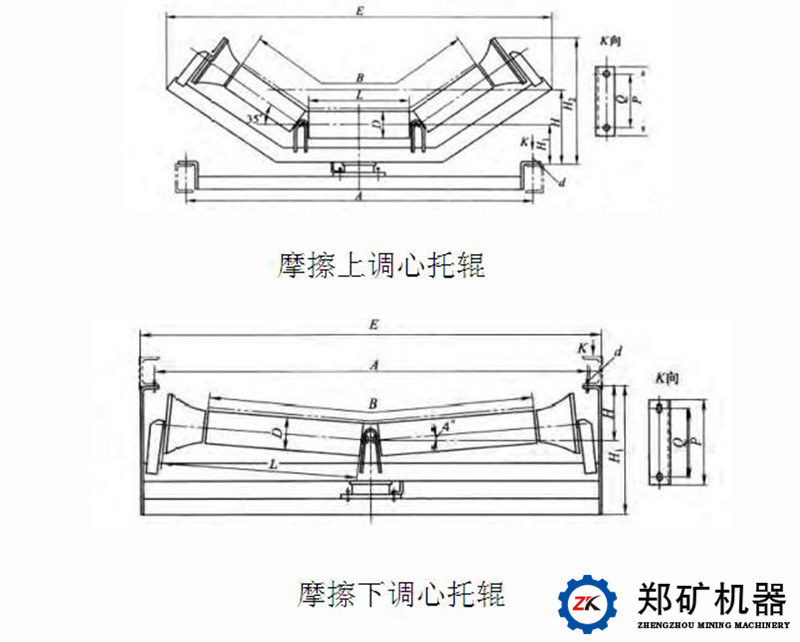 在加料處,為了減少物料對(duì)輸送帶的沖擊,應(yīng)先用緩沖托輥。對(duì)于長(zhǎng)于50米以上的輸送機(jī),常由于各種原因出現(xiàn)輸送帶跑偏現(xiàn)象。為了避免這種現(xiàn)象,承載托輥每隔10組可裝一組調(diào)心托輥。無(wú)載分支上每隔5-10組托輥,設(shè)置一組調(diào)心托輥。