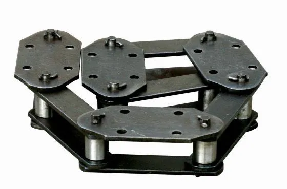 板鏈的結(jié)構(gòu)比較堅(jiān)固,適用于提升量大的提升機(jī)。但其鉸接頭處易受物料磨損,制造維修比較復(fù)雜。