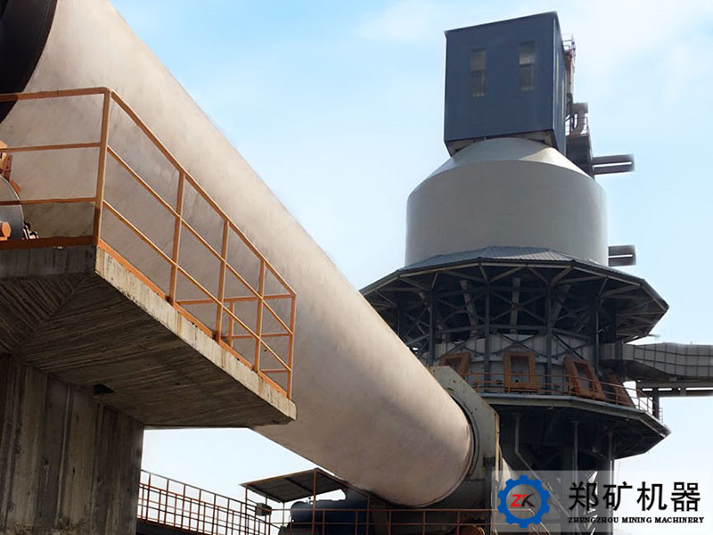 石灰石煅燒是由豎式預熱器+回轉窯+豎式冷卻器組成,產(chǎn)量100~800t/d,物料由預熱器頂部料倉經(jīng)下料溜管導入預熱器本體內,同時由回轉窯傳入的高溫煙氣將物料預熱至800℃以上,使石灰石發(fā)生部分分解,再由液壓推桿依次推入回轉窯尾部,經(jīng)回轉窯高溫煅燒后再卸入冷卻器內,通過風機吹入的冷風冷卻,將物料冷卻至環(huán)境溫度+60℃以下排出冷卻器。經(jīng)冷卻器吹入的空氣作為二次空氣進入回轉窯參與燃燒。